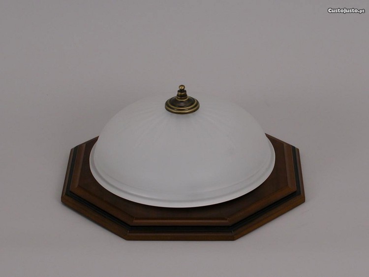 Preço: 30 €Plafonier sextavado, em madeira, com vidro fosco estrela