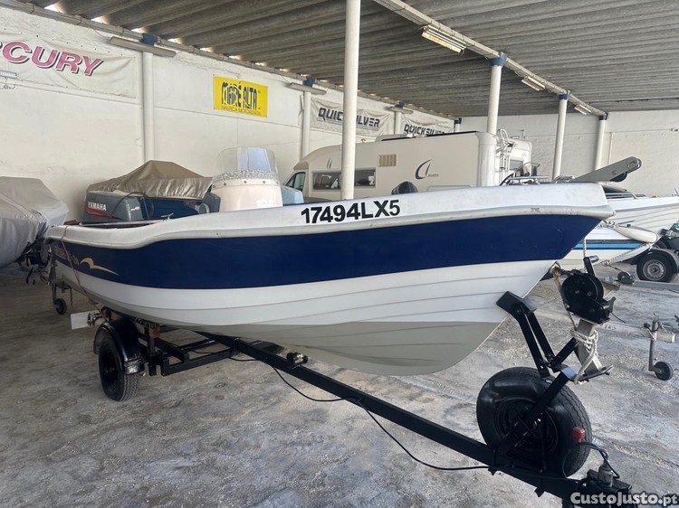 Atlântico 460 ano 2002, motor Yamaha 40 HP ano 1997, 2 tempos, arranque e trim eléctricos, autolube, atrelado sem matrícula, comprimento 4,68m, boca 1,88m, lotação 5 pessoas, ao da Lowrance Hook 7 com 6 meses, palamenta completa, vistoria válida até 20/06/2029, IUC 2025 liquidado (87,91 )