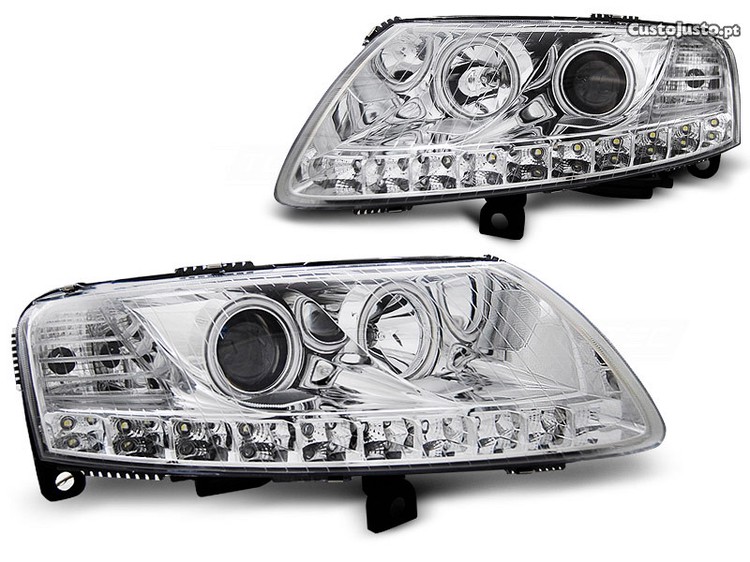 Faróis frontais Angel eyes em CCFL / Daylight em led para AUDI A6 C6 04.04-08 fundo Cristal