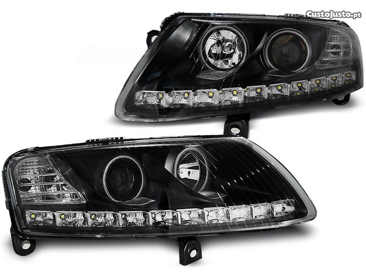 Faróis frontais Angel eyes em CCFL / Daylight em led para AUDI A6 C6 04.04-08 fundo preto
