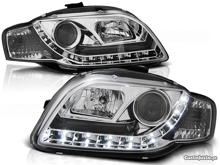 Faróis frontais devil eyes / daylight em led AUDI A4 B7 11.04-03.08 fundo cristal
