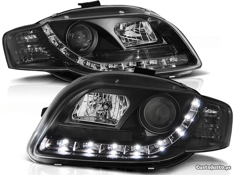 Faróis frontais devil eyes / daylight em led AUDI A4 B7 11.04-03.08 fundo preto