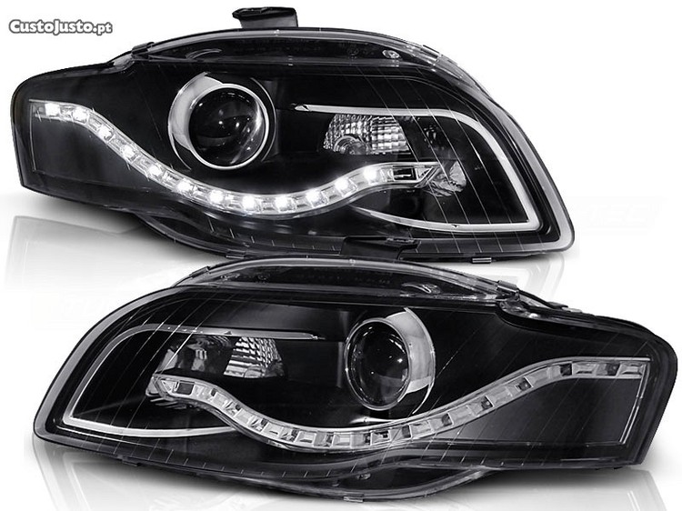 Faróis frontais devil eyes / daylight em led AUDI A4 B7 11.04-03.08 fundo preto