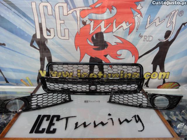 Preço: 239 €Kit 4 grelhas (frontal superior + frontal inferior e faróis de nevoeiro) em plástico para Audi A4 8e, B6 01-04 RS4 LOOK em preto