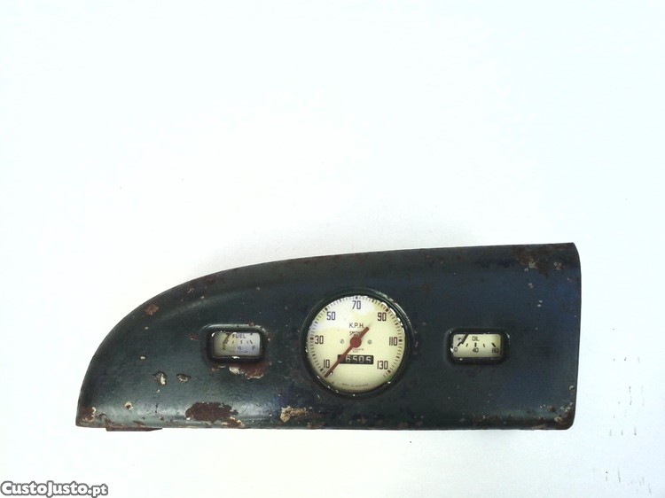 Manómetros / Quadrante, para Austin / Morris MInor anos 40-50, (Conjunto) composto pela Zona estrutural, Conta Km K.P.H SMITHS X 70620/8 620, Manómetro de Combustível SMITHS M-A UF1217 e Manómetro de Pressão de Óleo, tudo estava funcional quando foi retirado da viatura, posso envia via CTT.