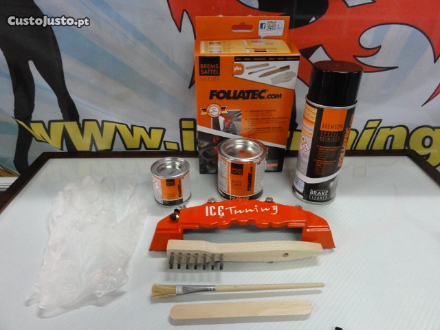 Preço: 33 €Tinta alta temperatura Foliatec de cor laranja brilhante para bombas / pinças de travão, kit 3 componentes + kit de instalação.