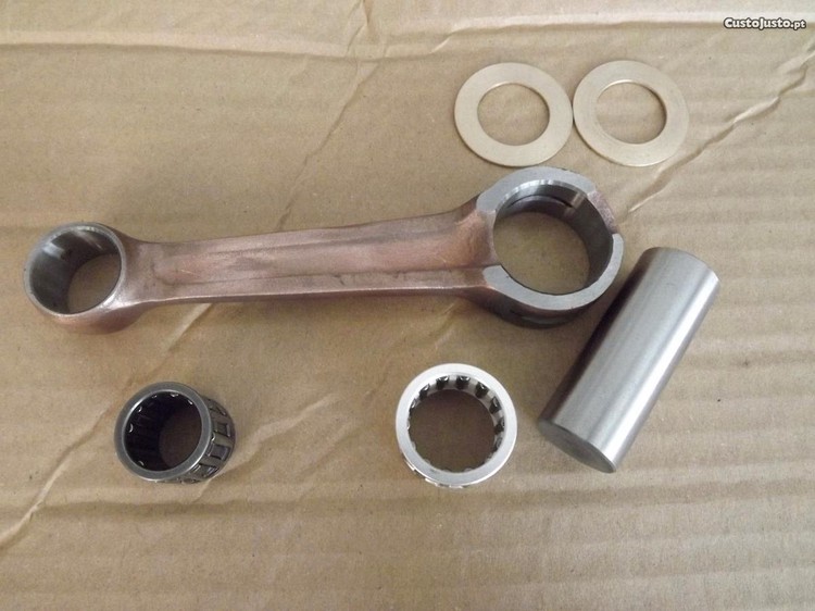 Biela reforçada , composta por biela , cavilhão da cambota , rolamento de baixo , rolamento de cima e anilhas de bronze