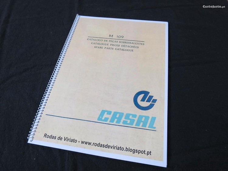 Vendo cópia encadernada do catálogo de peças sobressalentes do motor Casal M 109 com 50 cc, da motorizada ciclomotor Casal Boss / Super Boss. Bom para quem faz restauros ou reparações, poupando nos trabalhos, que são feitos por si.