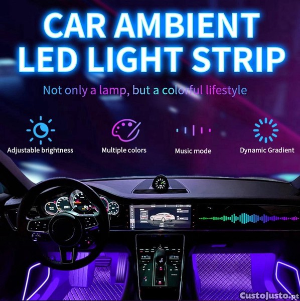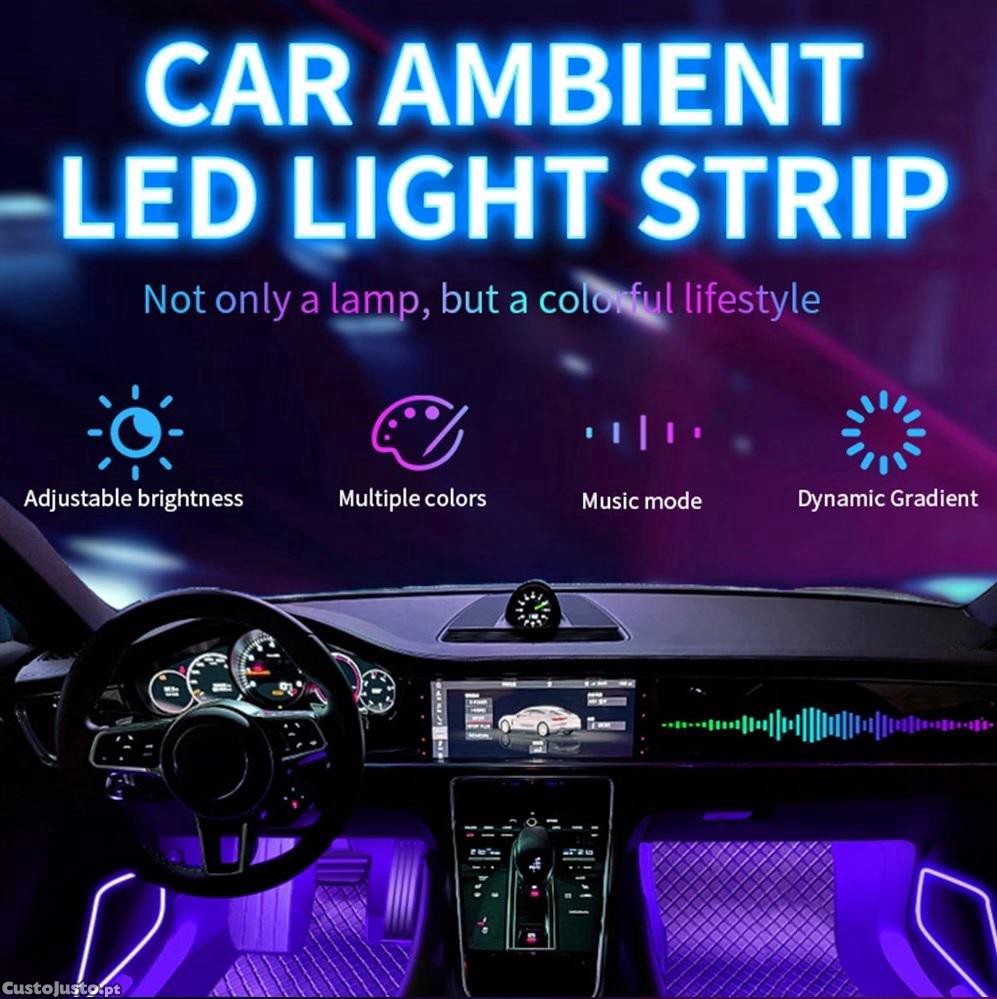 Kit de 4 fitas 32cm em led dinâmico luz ambiente com led alta qualidade RGB (luz cortesia / foot led) para tablier e bancos mult