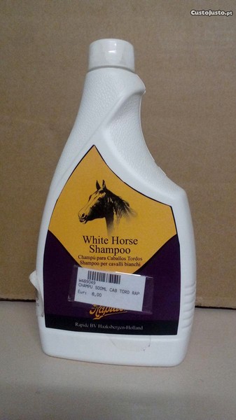 Champô para cavalos brancos - 8EUR; Champô para cavalos pretos ou escuros -8EUR; Amaciador com brilho - 10EUR; Champô em spray - 7.40EUR.