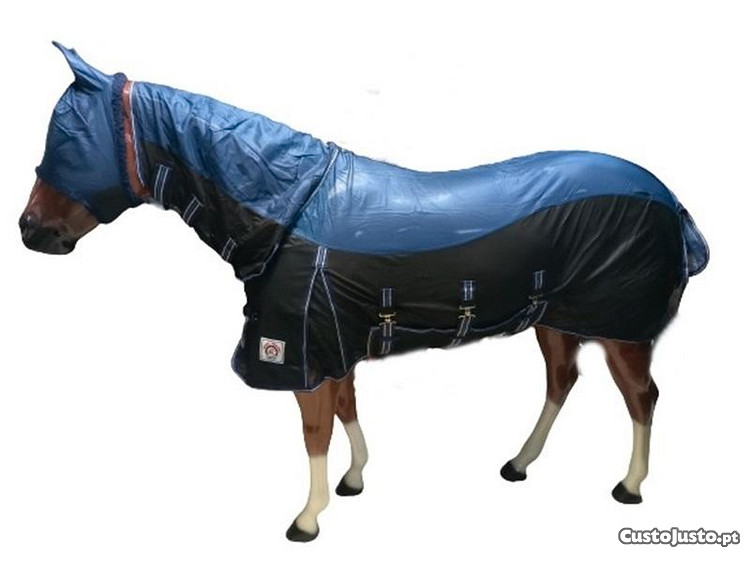 Manta de rede mosquito com máscara de rede, com um tecido especialmente concebido para evitar passagem pelos mais pequenos insetos. É equipado com folga para maior mobilidade, pernas ajustáveis cintas de nylon com uma cobertura de-cola, fechadura de peito duplo com fivela e surcingles.