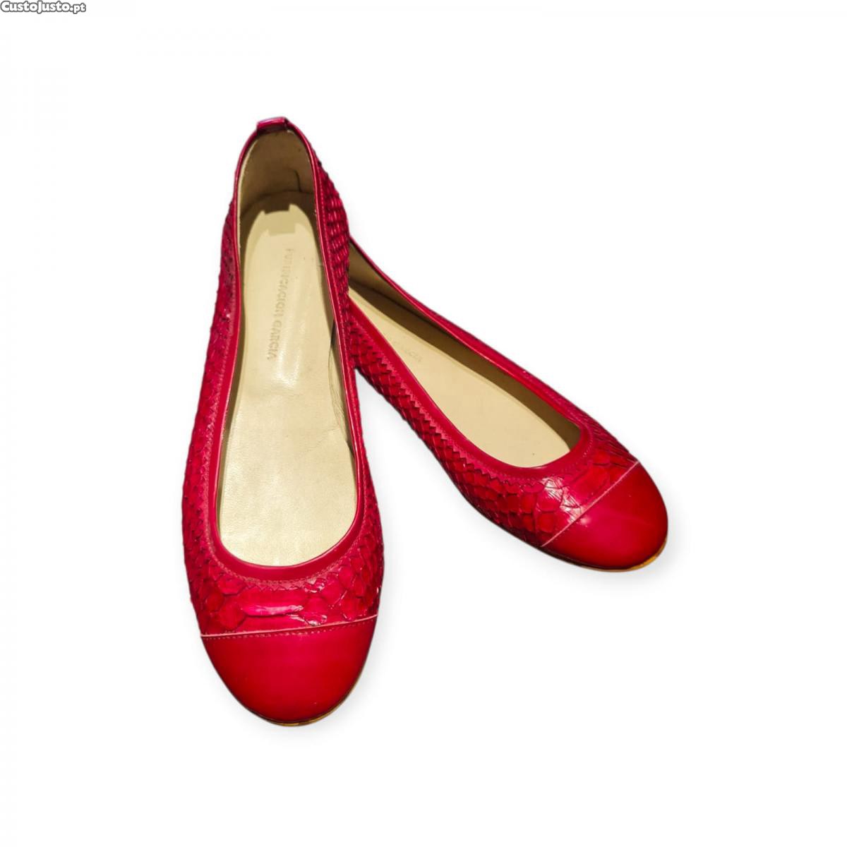 Sapatilhas de assinatura da marca espanhola Purificación García, com acabamento texturizado imitando escamas em tom vermelho. O modelo é elegante, leve e confortável ideal para looks do dia a dia com um toque de sofisticação.