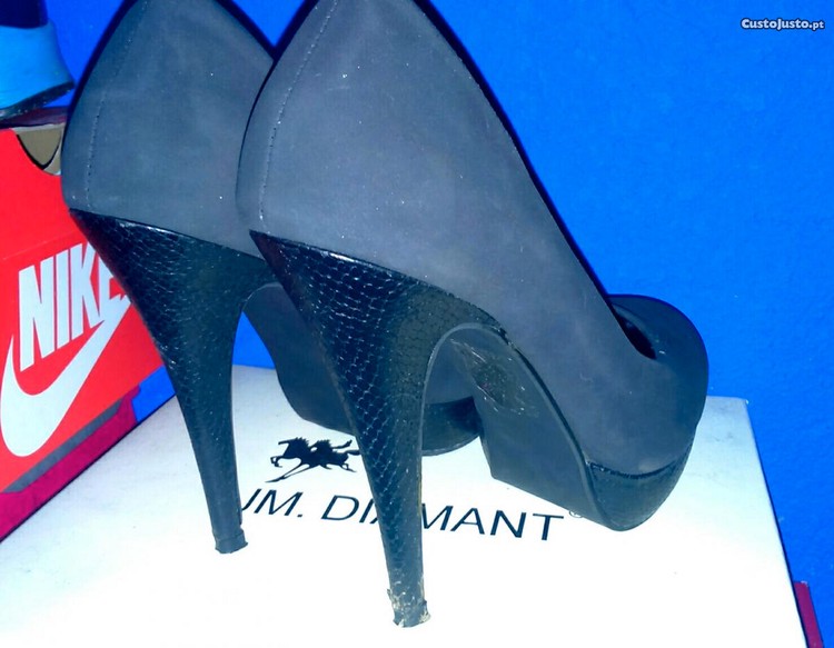 Preço: 15 €Sapatos cinzentos pretos cobra salto alto