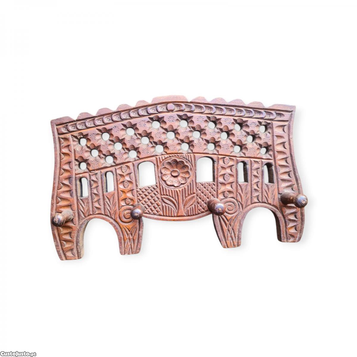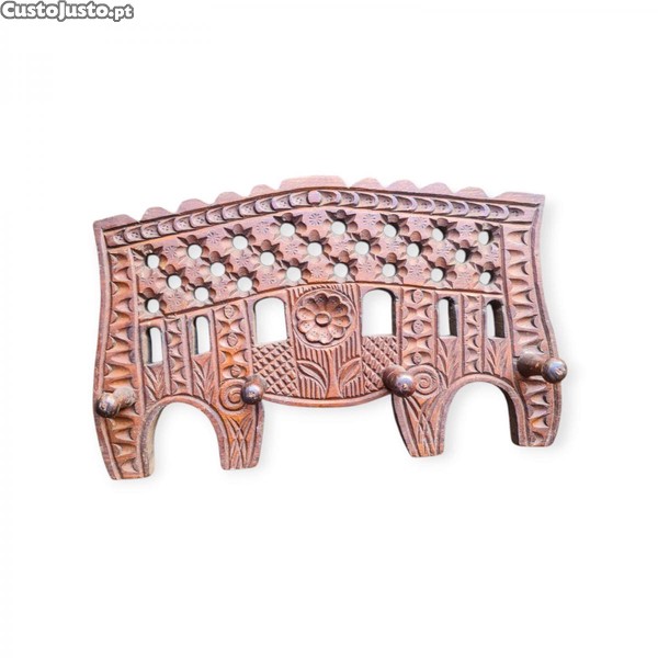 Bengaleiro Parede Madeira Entalhada Peça Artesanal com Charme Rústico