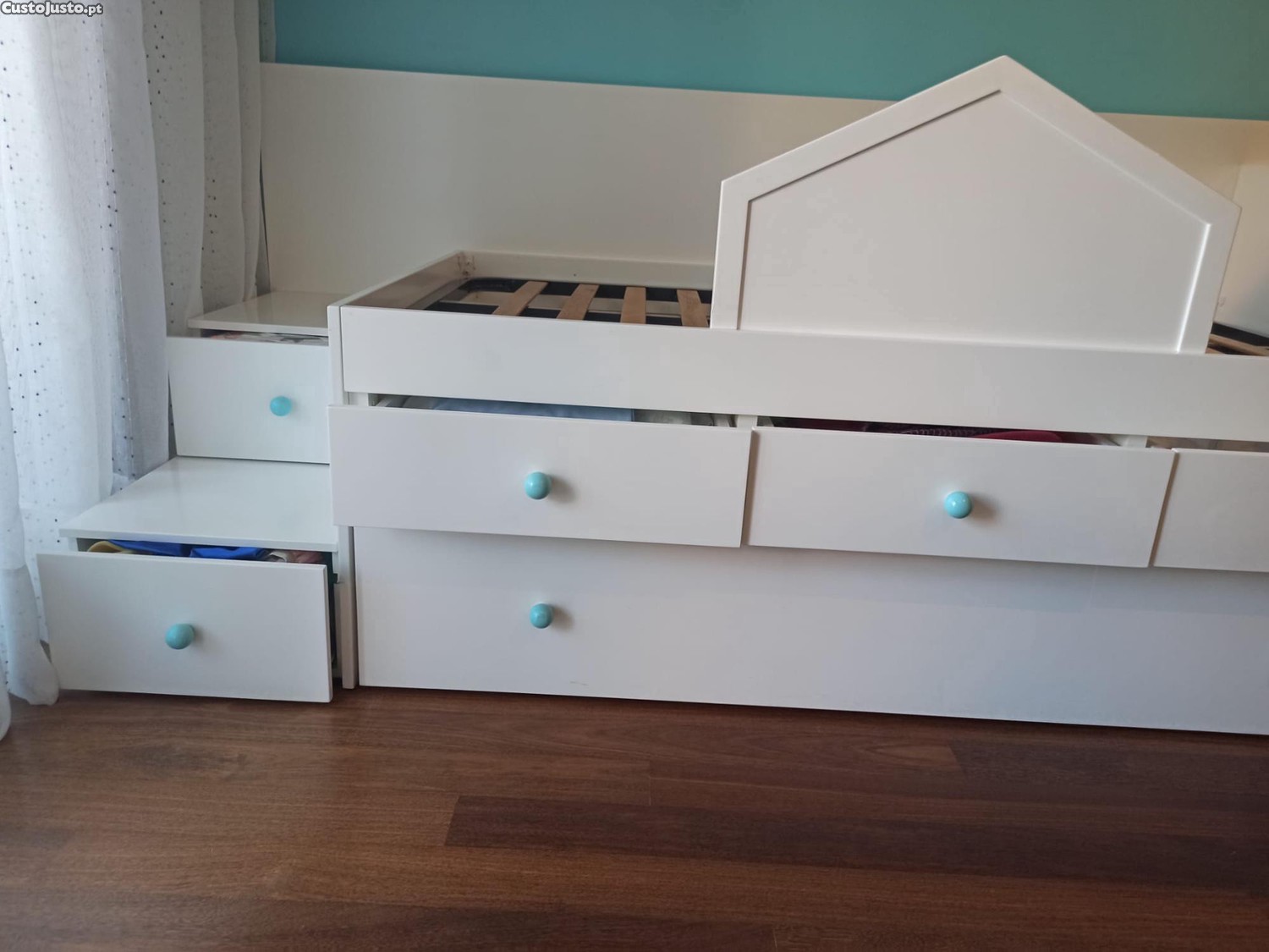 Preço: 550 €Cama Infantil em Madeira Maciça com Cama-gaveta e Arrumação
