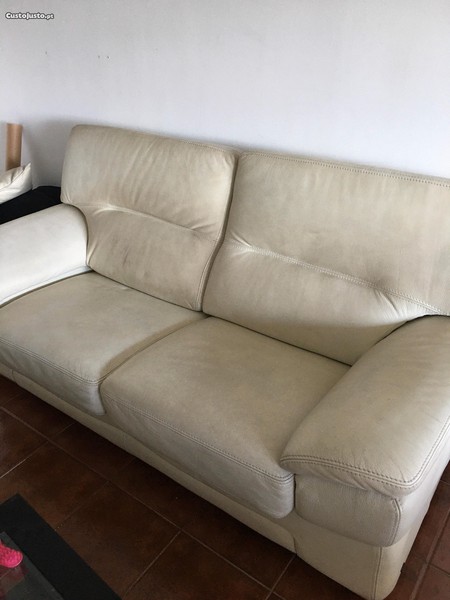 Tenho para venda conjunto de 2 sofás em pele branca muito bem cuidados e de muita boa qualidade! Não tem quaisquer quebra na pele nem marcas de desgaste! Neste momento como se pode ver nas fotos estão um poucos sujos pois neste momento não estão a ser usados! Ambos da mesma medida 1.95m x 1m