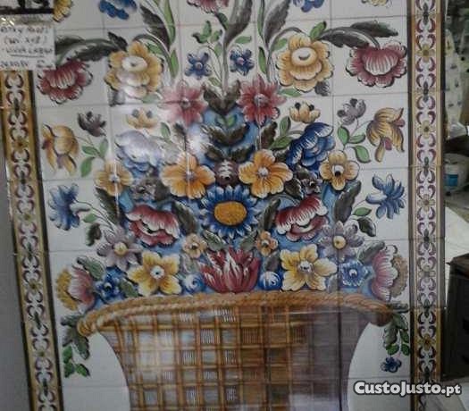 Quadro cesto com flores Viuva de lamego com cores com greca, 1,26x0,84. os azulejos e as greca estão soltos a medida de cada azulejo é de 14x14. Com greca ou sem mais portes de envio ou bem buscar.