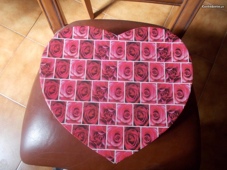 caixa com 6 chávenas de café em que os pires tem forma de coração.
