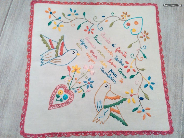 Lenços de namorados bordados à mão em linho com renda em crochet.