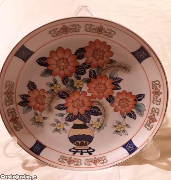 Preço: 4 €Prato decorativo com flores laranjas com 22 cm