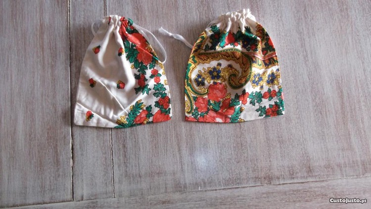 saquinhos pequenos com várias utilidades feitos de lenço regional.