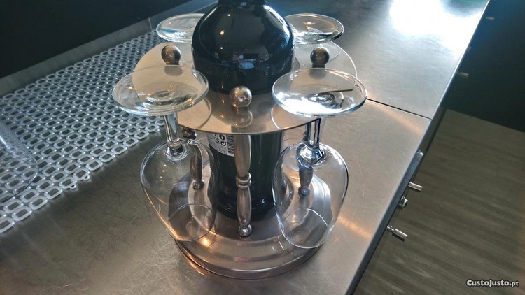 Suporte de 4 copos e 1 garrafa em muito bom estado inox.
