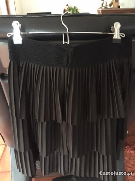 Vendo saia pliçada com 2 folhos de cor preta tamanho S