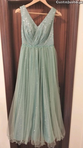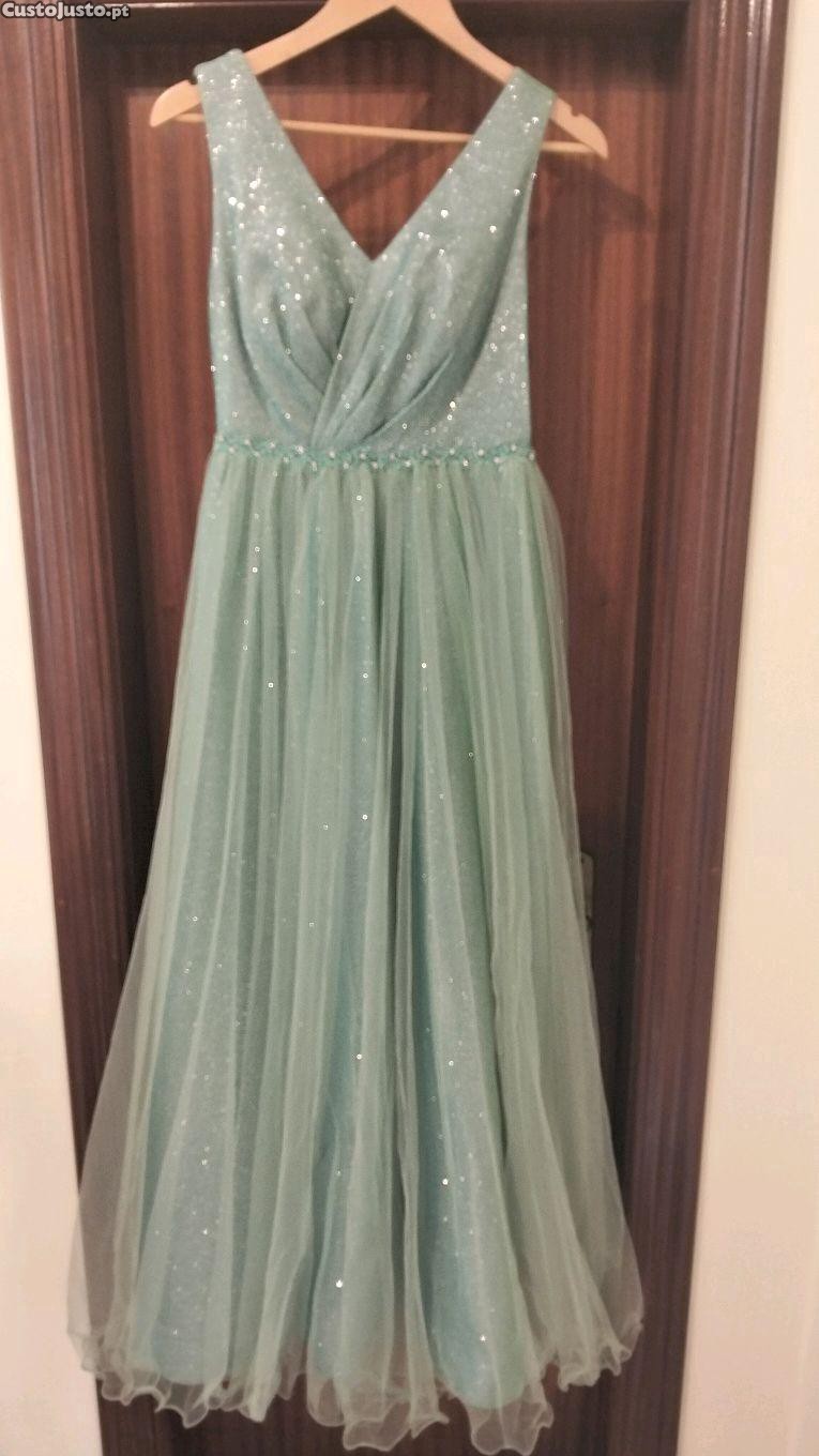vestido de cerimónia verde usado uma vez tamanho S,M