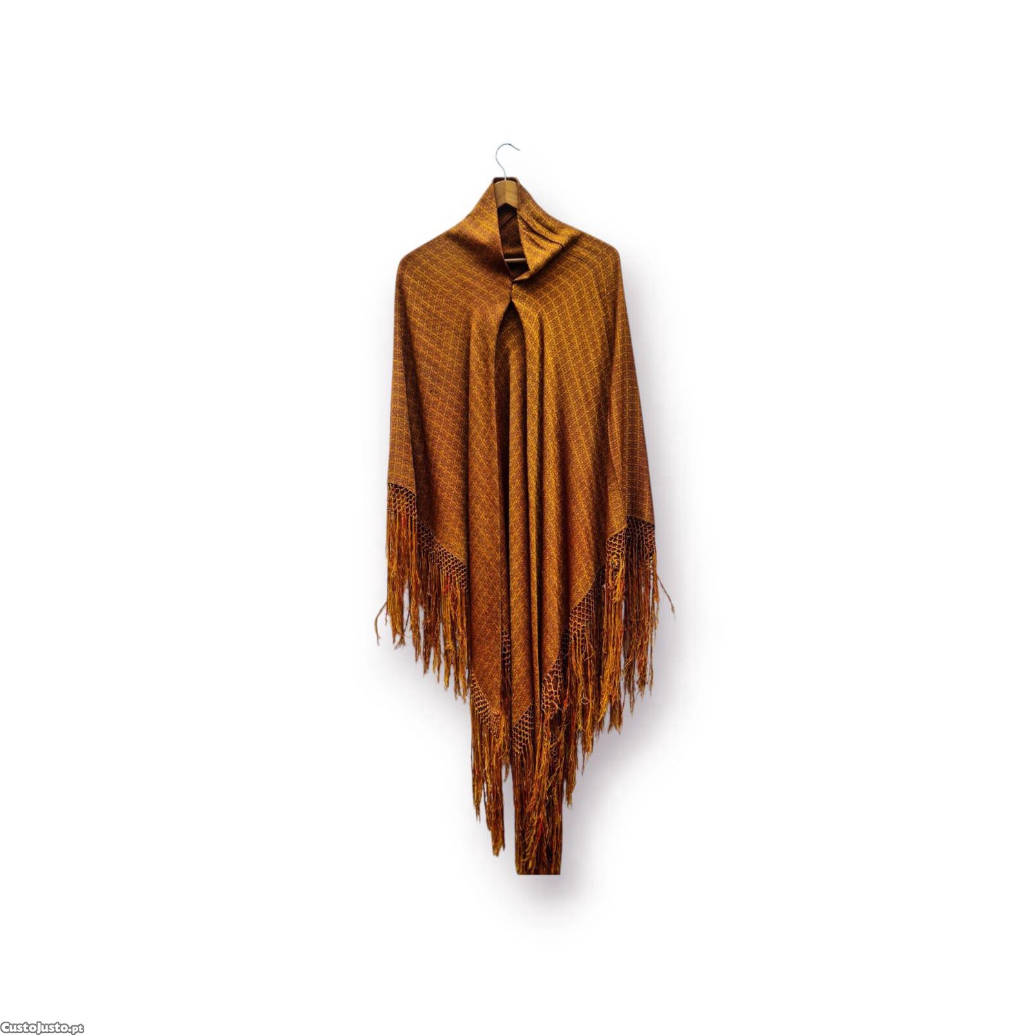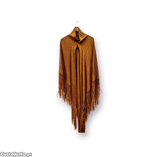 Este xaile de padrão entrelaçado apresenta uma combinação acolhedora de tons castanhos e alaranjados com detalhes rosa, além de longas franjas trabalhadas que conferem charme e autenticidade. Apesar de apresentar algumas manchas e sinais de desgaste (visíveis nas fotos), continua a ser uma peça cheia de estilo, ideal para quem aprecia vestuário com história ou procura um acessório boho para os dias frescos. Xaile com franjas decorativas Tons castanho, laranja e rosa entrançados Tecido leve, confortável e envolvente Ideal para estilo boho ou tradicional Com sinais de uso (manchas e fios soltos) Medidas aproximadas: 155 x 155 cm Nota: Apresenta algumas manchas escuras e pequenas imperfeições no tecido (ver fotos em detalhe).