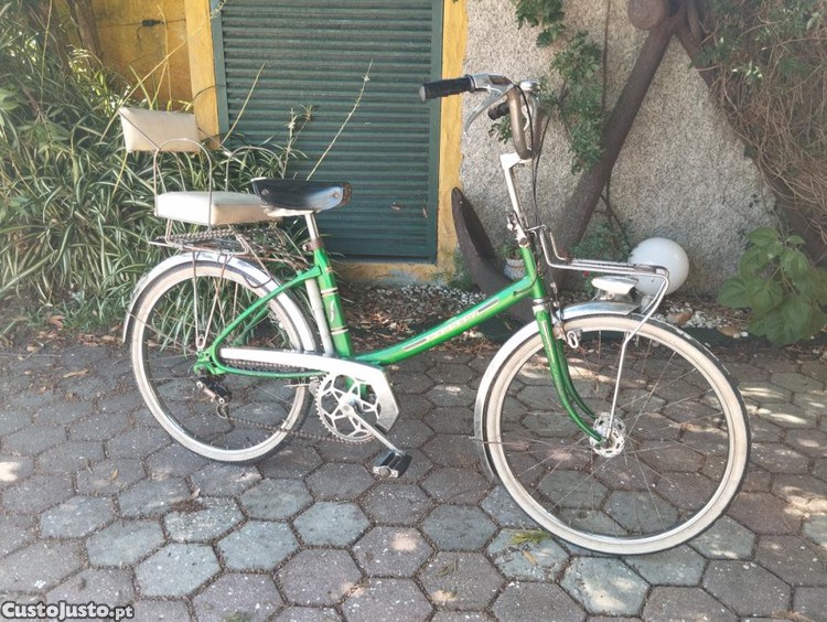 Com extras, cadeira criança época, bomba ar, campainha Peugeot, travões Peugeot, luz, etc.