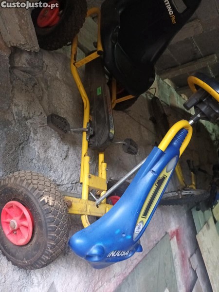 Vendo carro a pedais em bom estado e a funcionar para crianças, com pneus de borracha. Precisava de colocar câmaras de ar.