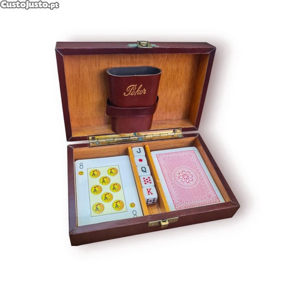 Preço: 29 €Estojo vintage JUEGOS Caixa Madeira, Copo Poker , Baralho e Dados (anos 70 90)