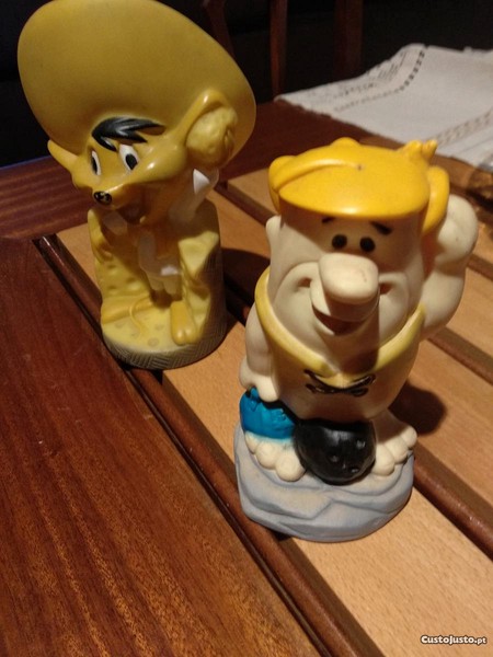 2 bonecos borracha de coleção, um Flinstones e outro o speedy gonzales