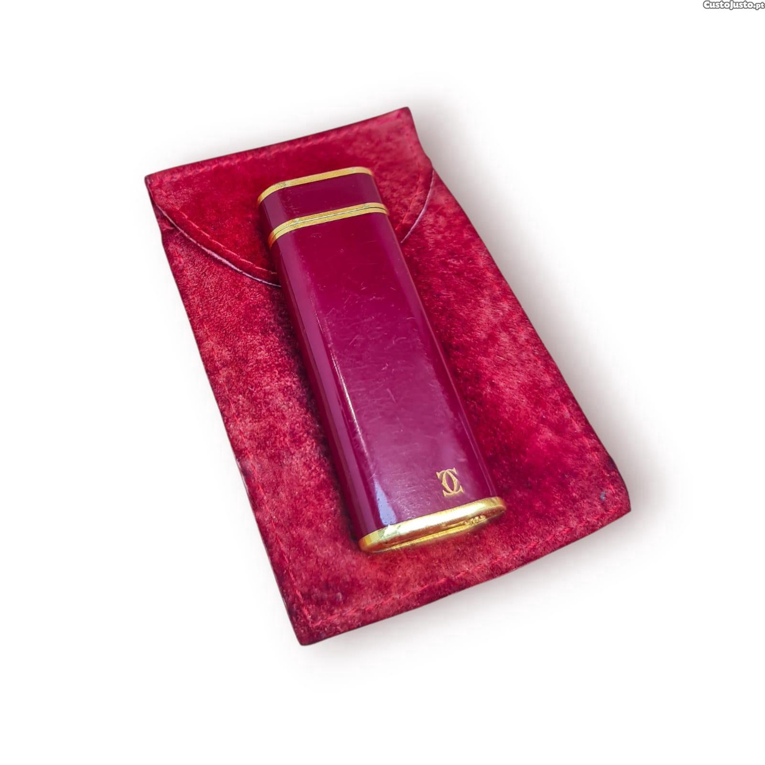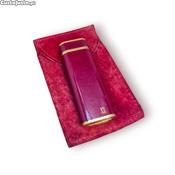 Preço: 196 €Cartier Isqueiro Les Must , oval, laca Bordeaux & dourado (Swiss Made) com bolsa