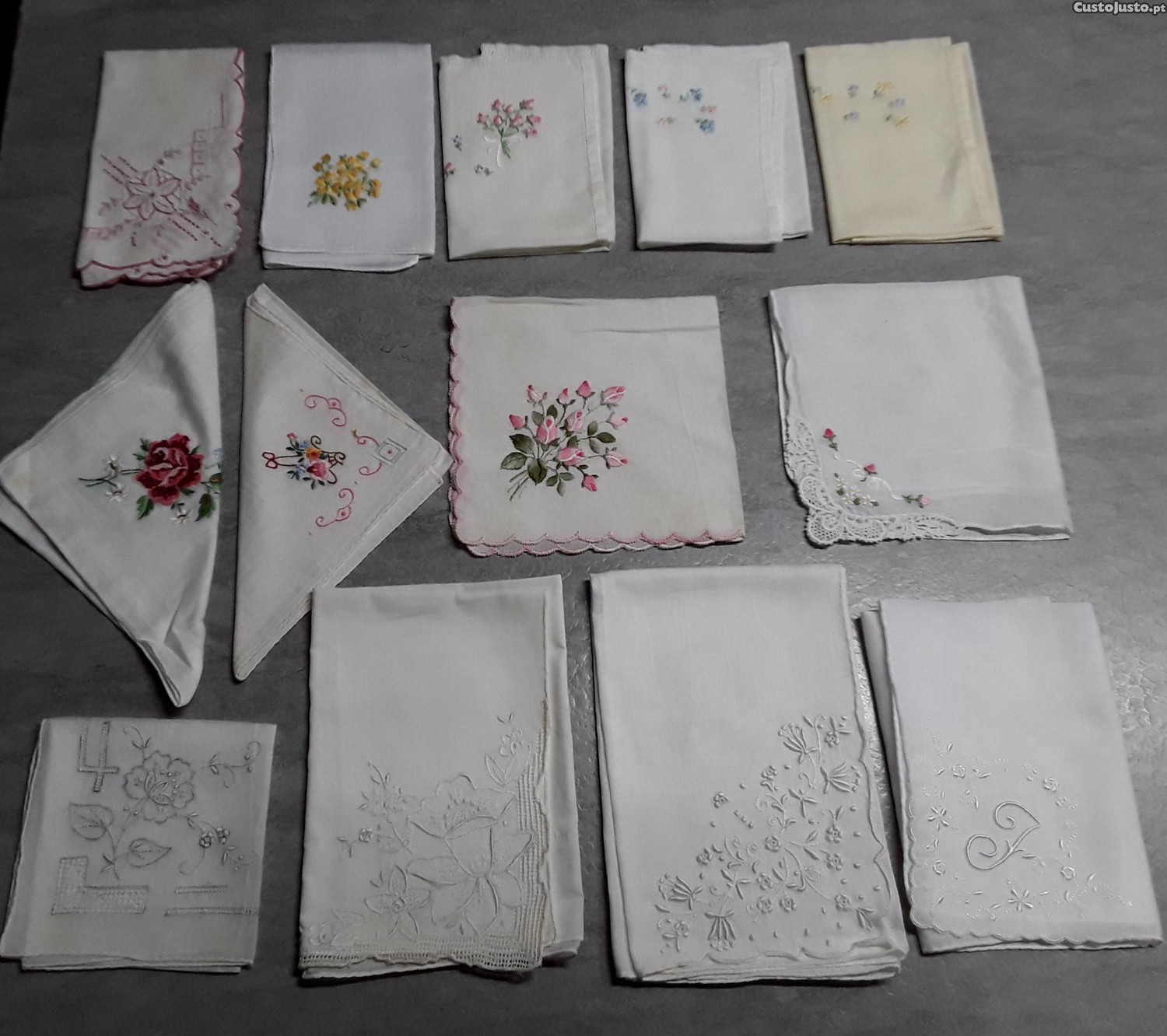 Vendo vários lenços antigos de mão de Senhora bordados ou com rendas