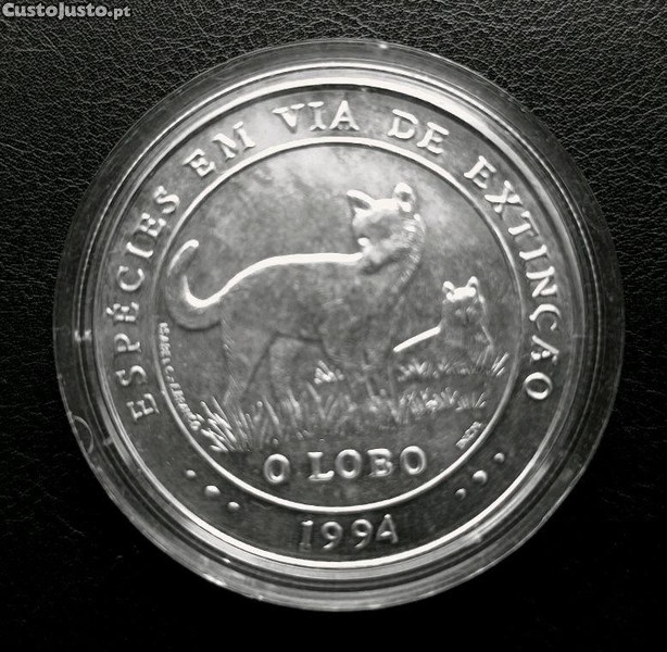 Moeda Portuguesa de Mil escudos em Prata, "O Lobo" em cápsula