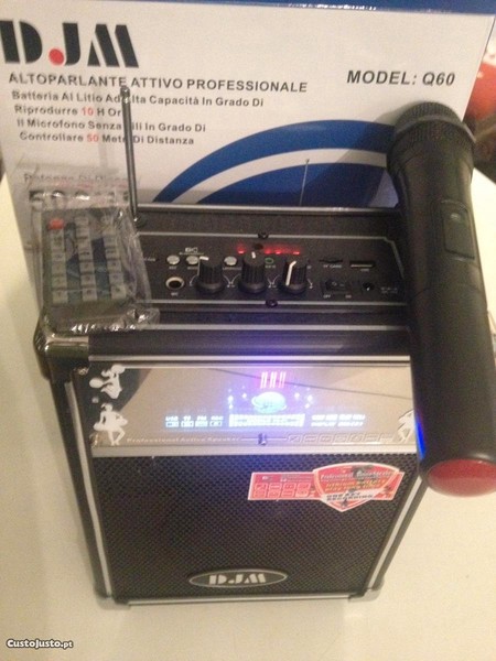 Coluna com amplificação, micro sem fio, Radio, usb, etc.Com autonomia para 12 horas.