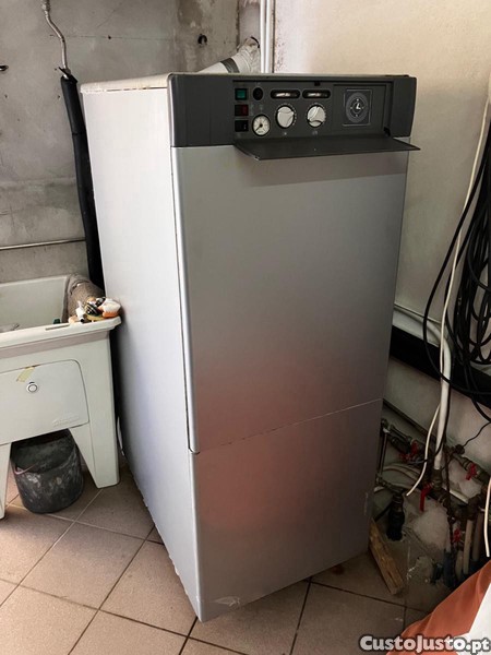 Caldeira a gasóleo em bom estado para aquecimento central e de aguas quentes com deposito de 80 litros.