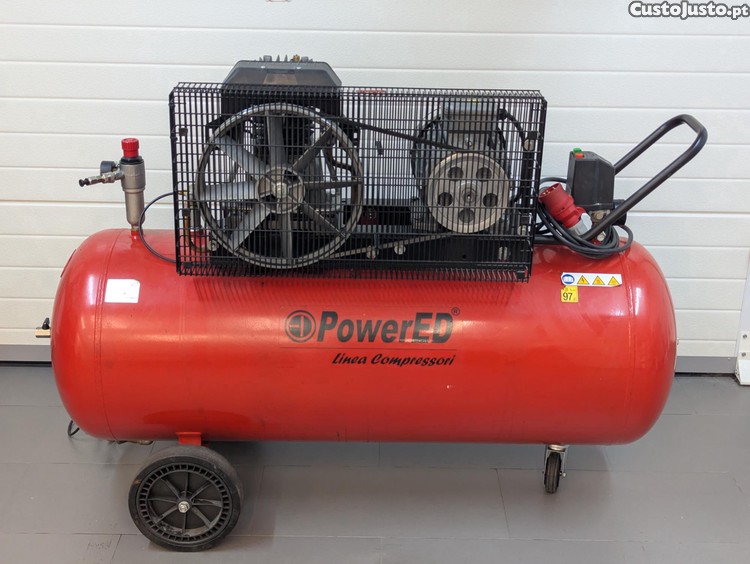 Compressor ar comprimido de correia marca PowerED 270L 5.5HP trifásico e com purga automática