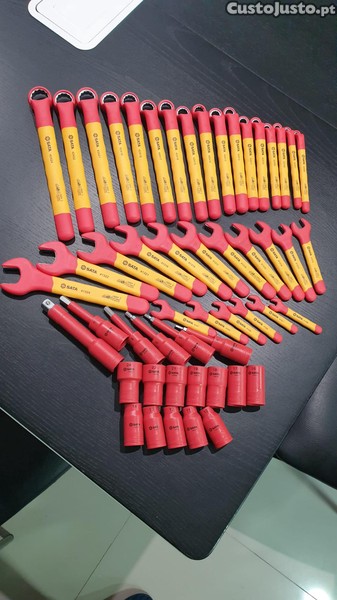 Conjunto de chaves Certificadas VDE da marca SATA, composto por: 16 chaves luneta, Números: 6,7,8,9,10,11,12,13,14,15,17,18,19,21,22 e 24mm.