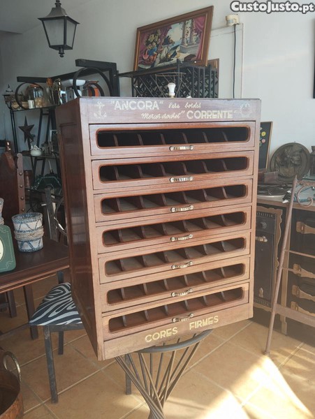 Antigo móvel para linhas. Peça de coleção muito antiga.