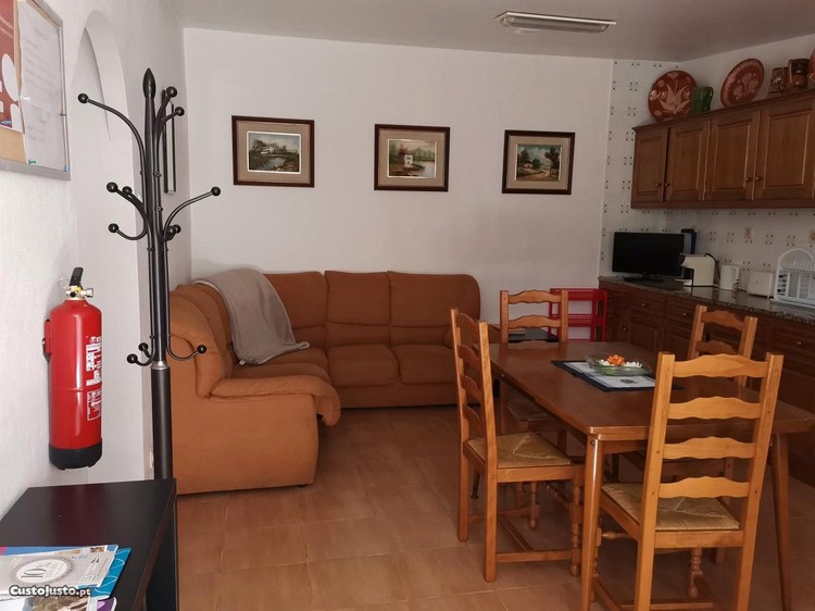 Sala/cozinha totalmente equipada com loiças e eletrodomésticos, tv etc.