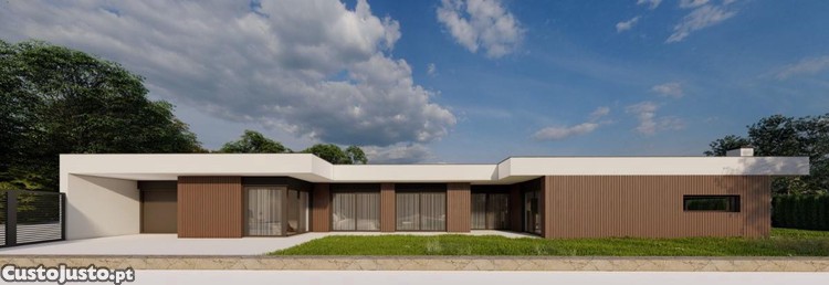 Moradia T3 nova (em construção) composta por três quartos com roupeiros embutidos, sendo um suíte, 2 casas banho (1 completa e 1 suíte) , cozinha e sala ampla em open space, despensa e garagem para 2 carros.