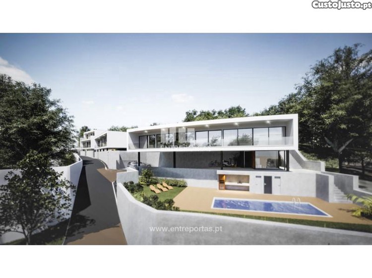 Moradia em fase de construção, composta por três pisos, em que o res do chão está destinado ao estacionamento das viaturas e a sala das máquinas. No primeiro piso encontramos a sala de estar e jantar, cozinha e uma casa de banho de serviço, bem como a lavandaria. O segundo piso é constituído por dois quartos com casa de banho em comum e uma suíte com closet.