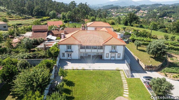Espetacular moradia com quatro suites, constituída por de cave, rés de chão e andar, localizada na freguesia de Rebordões Santa Maria, concelho de Ponte de Lima. Esta propriedade possui uma área total aproximada de 2.100m2, uma área bruta de construção de 528m2 e terreno com uma área de cerca de 1.900m2. A cave com portão automático e uma área total de 120m2, divididos pela garagem, permitindo estacionar até 6 viaturas, lavandaria, arrumos/escritório e sala de banho completa. De salientar que toda a cave possui entradas de luz e ventilação natural. No rés de chão possui a cozinha com copa (40m2), ampla sala de estar/jantar com áreas generosas (50m2), sala de banho completa e hall. O 1º andar conta com 4 suites (2 com varandas), todas com roupeiros embutidos, lindo hall que poderá servir também como zona de estar e uma bela varanda com vistas desafogadas. Características interiores: - Janelas com vidro duplo e sistema basculante; - Ar condicionado; - Dois aparelhos de sistema de ventilação de ar VMC; - Bomba de calor sistema INVERTER para aquecimneto das águas; - Sistema de controlo remoto das luzes nas áreas comuns do interior da moradia. Características exteriores: - Churrasqueira; - Piscina com tratamento com sal; - Sistema de controlo remoto das luzes nas áreas exteriores; - Duas entradas independentes, uma com portão automático; - Tanque de água corrente de mina; - Água da companhia; - Zona de relva e ajardinada com sistema de rega; - Zona agrícola (vinha com casta de Douro, casta tinto Rori, branco Loureiro e Verde Tinto- vinhão, oliveiras e árvores de fruto); - Anexo para arrumos/casa das máquinas com 48.90m2; - Propriedade toda vedada com muros em pedra granitica da região. Esta moradia foi totalmente restaurada e ampliada tendo as obras terminado nos finais do ano de 2023. Cada espaço, cada detalhe foi cuidadosamente pensado para criar ambientes confortaveís e acolhedores, não esquecendo de conciliar o rústico e o moderno que se encontram em perfeita harmonia. Esta maravilhosa propriedade fica a menos de 10 minutos do centro da vila de Ponte de Lima e dos acessos à A3 e A27, a 50 minutos do Aeroporto Sá Carneiro, possuindo bons acessos e exposição solar. Contam os antigos que no século XIX a Casa da Gândara (nome antigo da casa), era uma espécie de Consulado por dar uma espécie de asilio às pessoas que tocassem no Brasão que na altura existia. Existia uma pedra com a seguinte descrição: António Joaquim de Abreu e Lima Araújo Pereira Malheiro, fidalgo da Casa Real mandou restaurar e ampliar a Casa da Gândara no ano de 1802 . Santa Maria de Rebordões, oficialmente Rebordões Santa Maria, é uma freguesia portuguesa do município de Ponte de Lima, com 7,20 Km² de área e cerca de 969 habitantes (censo de 2021). A sua densidade populacional é de 134,6 hab./Km². ;ID RE/MAX: 123731008-397
