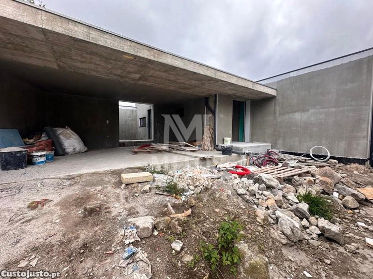Moradia T3 térrea em construção composta por cozinha open space, ampla sala com acesso ao jardim, três quarto com roupeiros embutidos, sendo um suite, 3 wc´s e garagem.