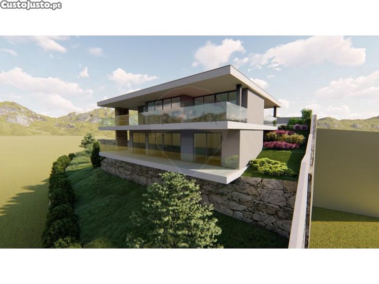 Terreno de construção com 970m2. Viabilidade de construção de uma moradia com área total de 300m2 (20m2 de implantação). Dispõe de estudo prévio de projeto de arquitetura (exemplo meramente ilustrativo da viabilidade). Bons acessos, perto da entrada para o IC28 e de superfícies comerciais.