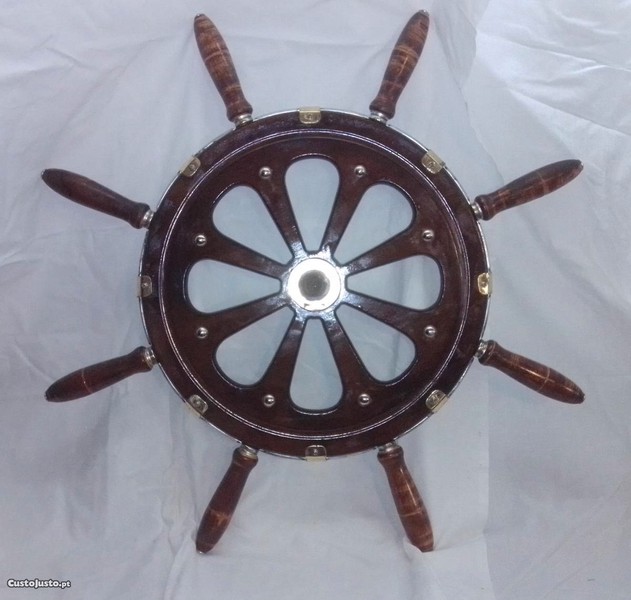 Preço: 90 €Roda de leme - réplica nova elaborada á mão, e envernizada, com 0, 50cm de diametro