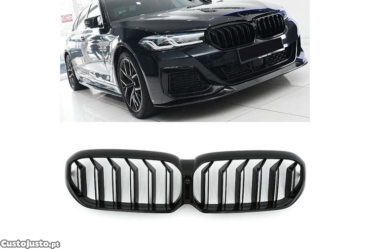 Grelha Dianteira Lama Dupla Preto Brilho Para Bmw Serie 5 G30/G31 2020--