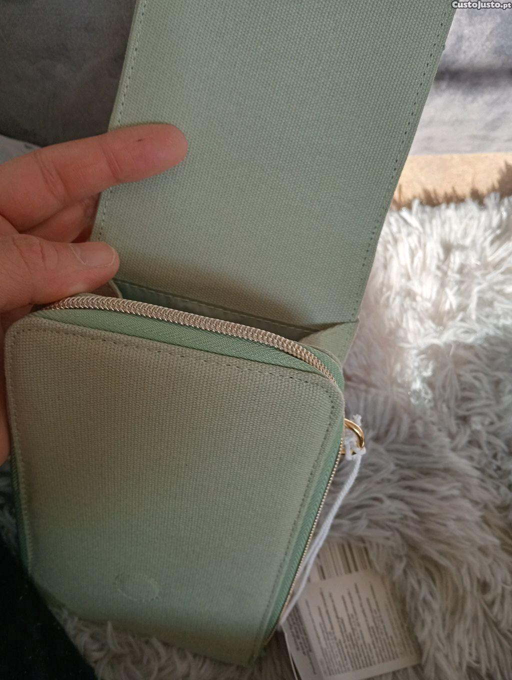Bolsa nova, para arrumar o smartphone. Cor verde.
